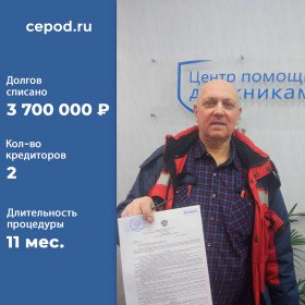 Списано долгов на 3 700 000 р. за 11 месяцев. Кол-во кредиторов - 2 шт.